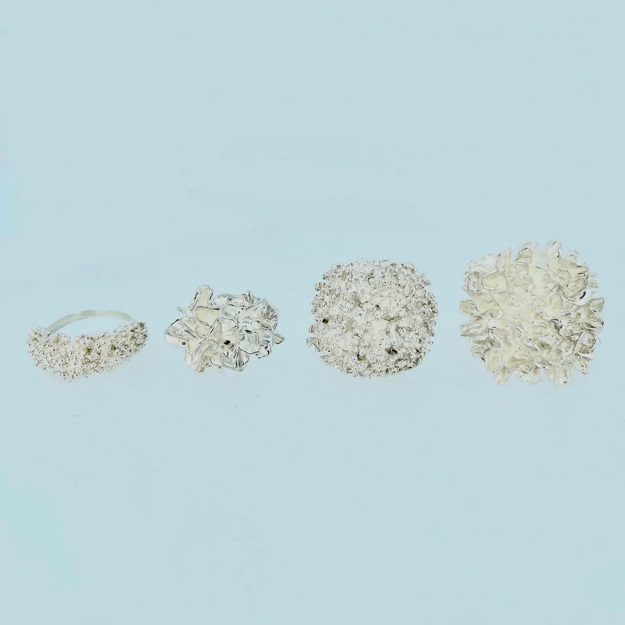 いちおしはほうきたけのリングです。ロストワックス技法ならではの繊細な形に反して モチーフがきのこと言う意外性が魅力のひとつです。